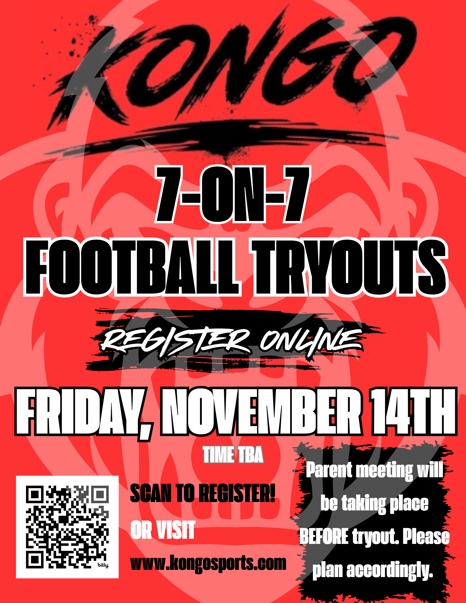 Kongo Football Academy is a program for kids trying to further themselves in the skills and knowledge of football. This program is a 7-on-7 format. Athletes will also get strength training, agility training, and position specific skills to develop into a top level player. We train every position both offense and defensive. Competitive teams will compete in a local league as well as some local tournaments.